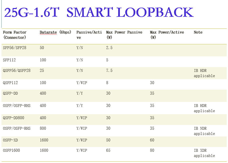 25G-1.6T高速網絡端口測試回環(huán)器(Loopback)、25G-1.6T系列無源直連電纜(DAC)、400G/800G/1.6T?有源直連銅纜(ACC)、400G/800G有源銅纜(AEC)